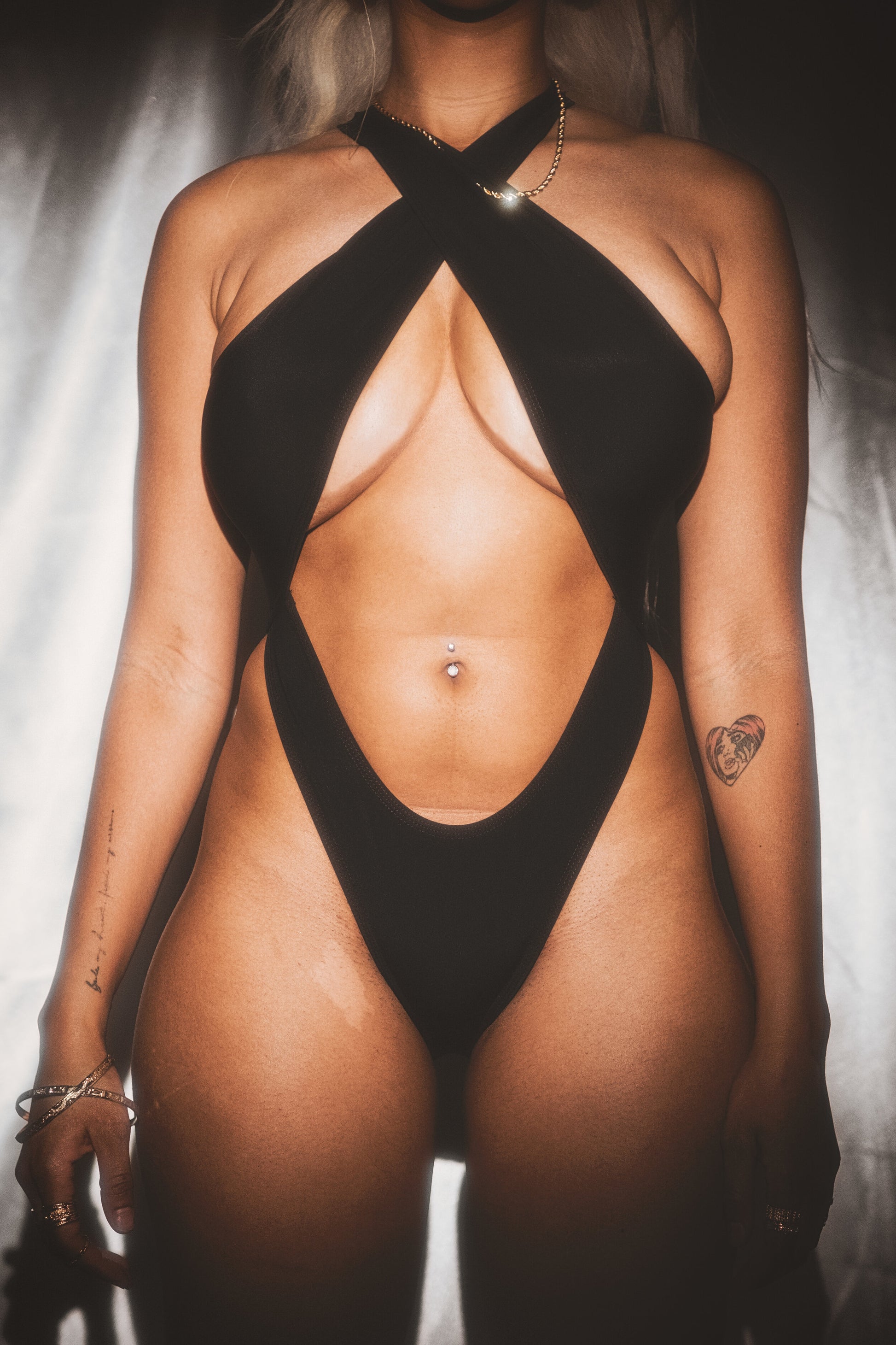 "Bladed"; used to describe the flat elongated form or shape of a mineral. MM's bladed cut suit is guaranteed to accentuate your curves with its elongated crossed front panels.