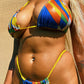 Metallic multicolored spandex string bottom with full coverage back/yellow string detail. Multi colored string option available.